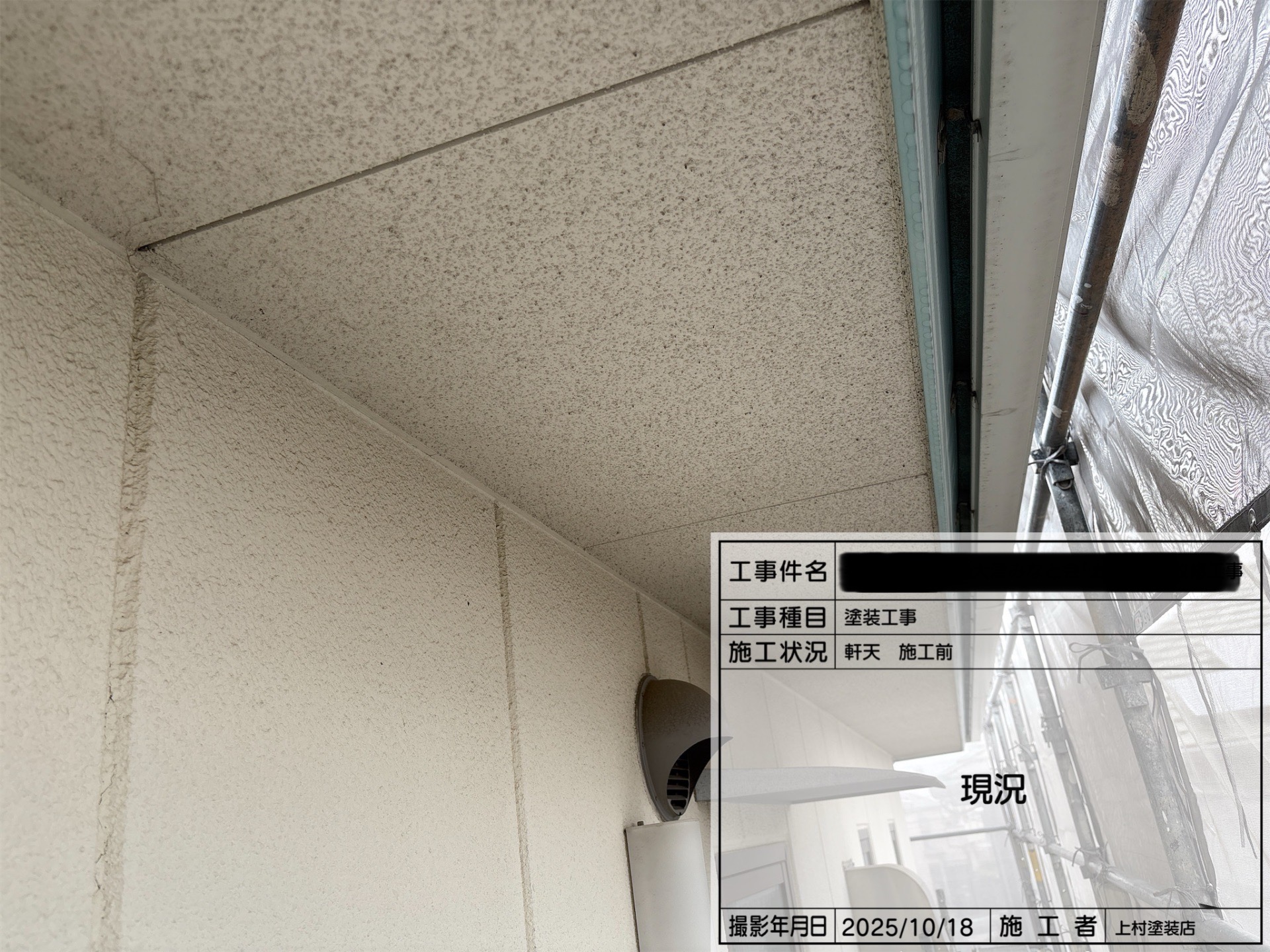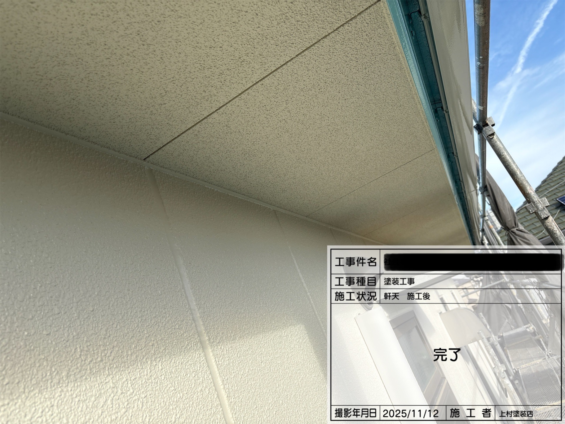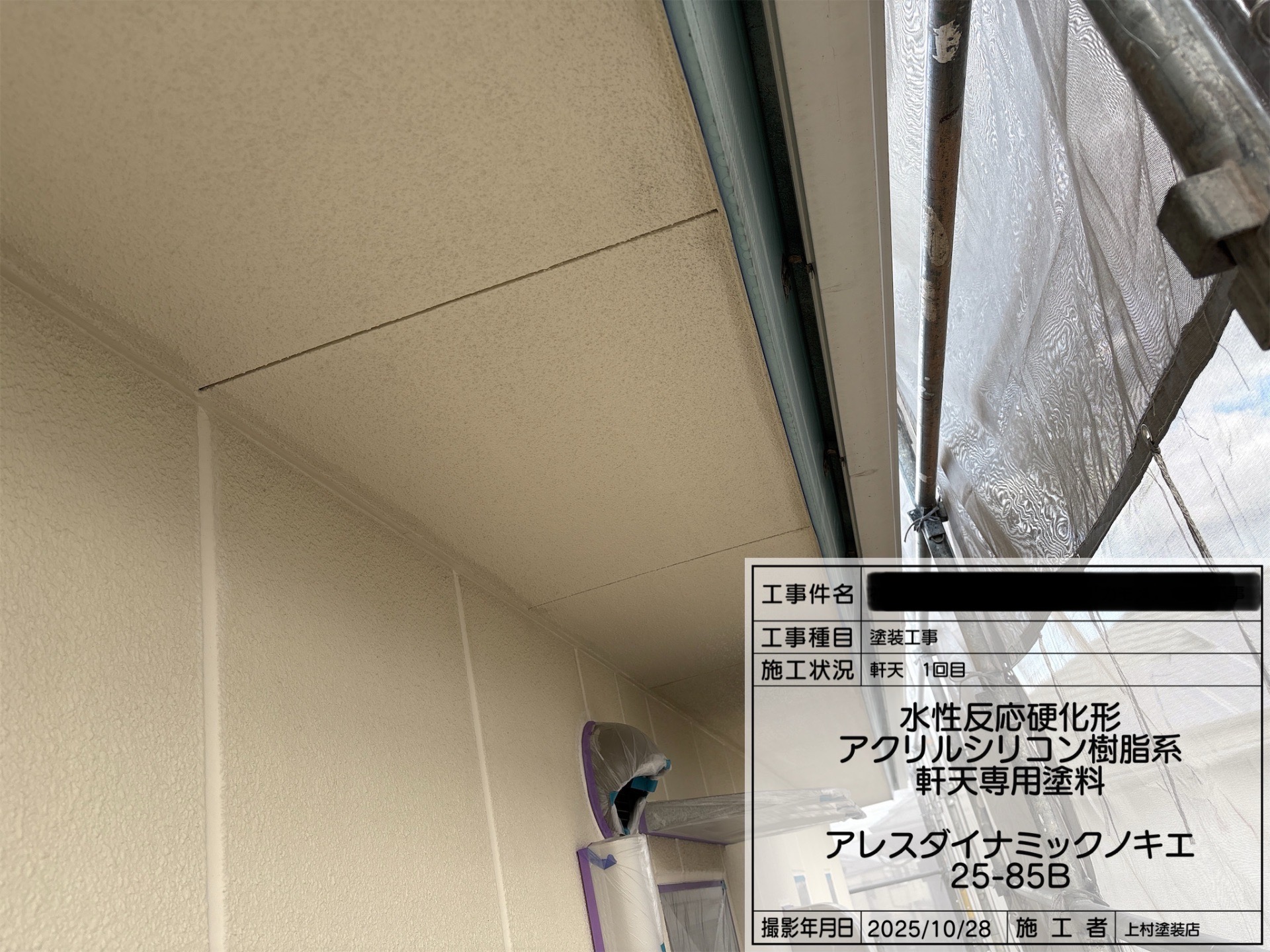 軒天井の塗装風景です。