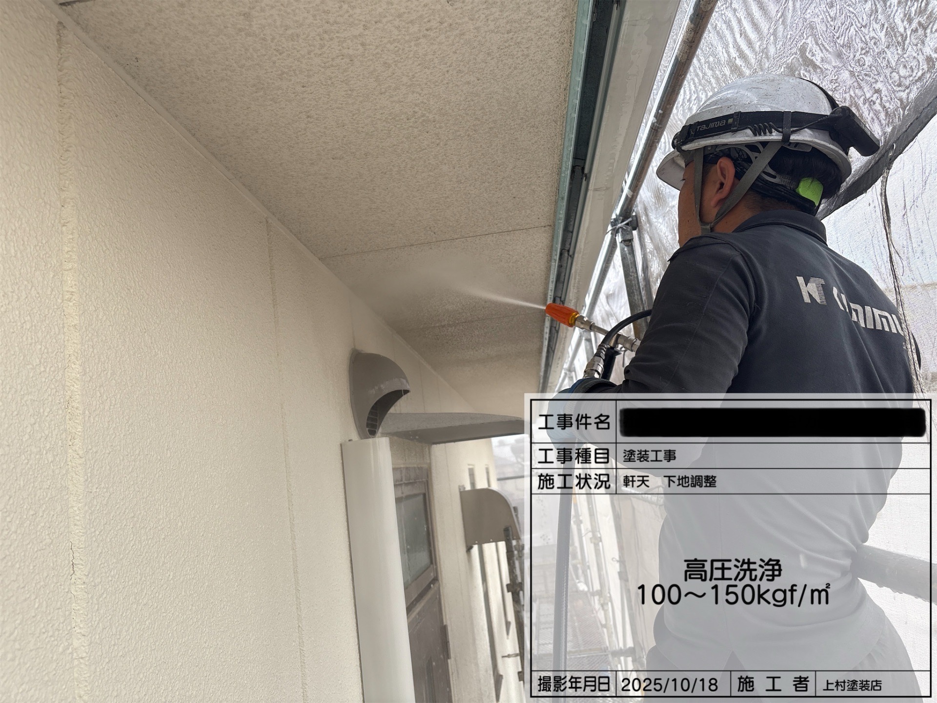 高圧洗浄→上塗材1回目塗布→2回目塗布→完了です。