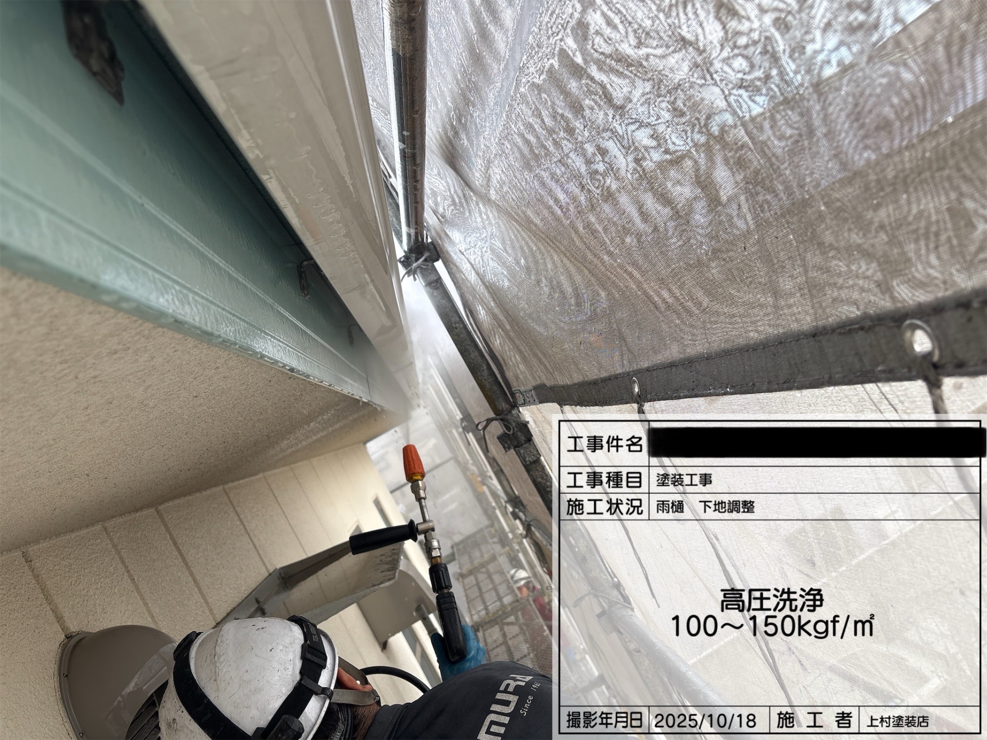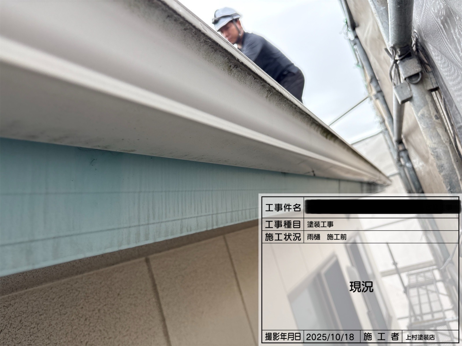 泉大津市 某施設 塗装工事 2025.12.05 付帯部塗装の風景です。 雨樋の塗装です。 高圧洗浄→上塗り1回目→上塗り2回目→施工完了 Tweet ブログ一覧, 上村日記 泉大津市 某施設 塗装工事