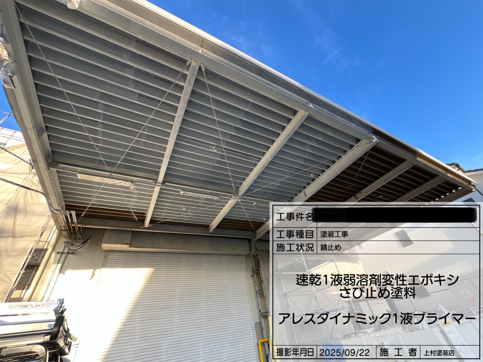 本日はシャッターと庇裏、鉄骨の
